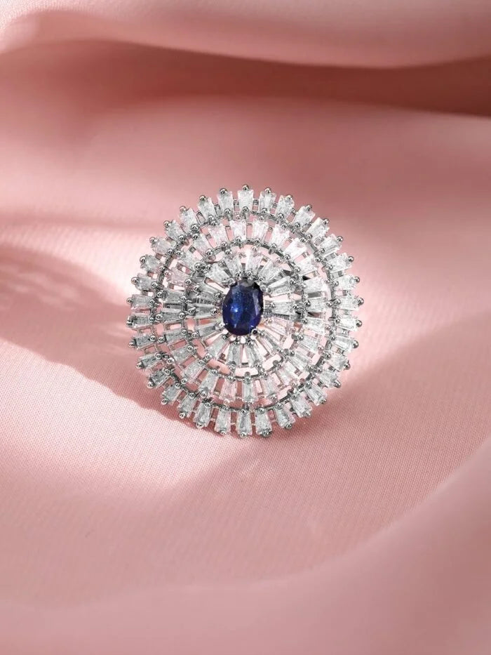 Luxury Round Diamond Cocktail Ring in Silver Finish